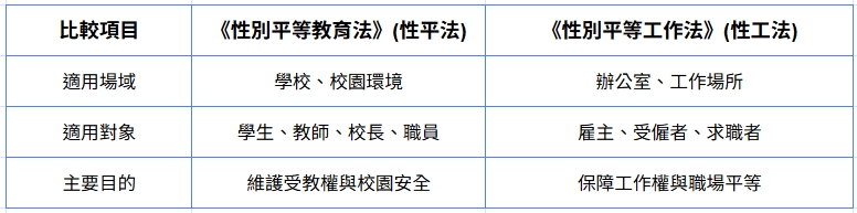 延續「職場篇」的討論,當騷擾行為發在教育環境時,適用的法律則轉為《性別平等教育法》(簡稱性平法)。